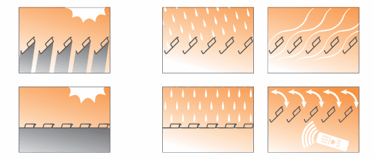 When closed, the waterproof louvres form a fully sealed surface, and the integrated drainage system channels rainwater away through discreet internal gutters and downpipes. This combination keeps the area beneath dry and protected, even during heavy rain.