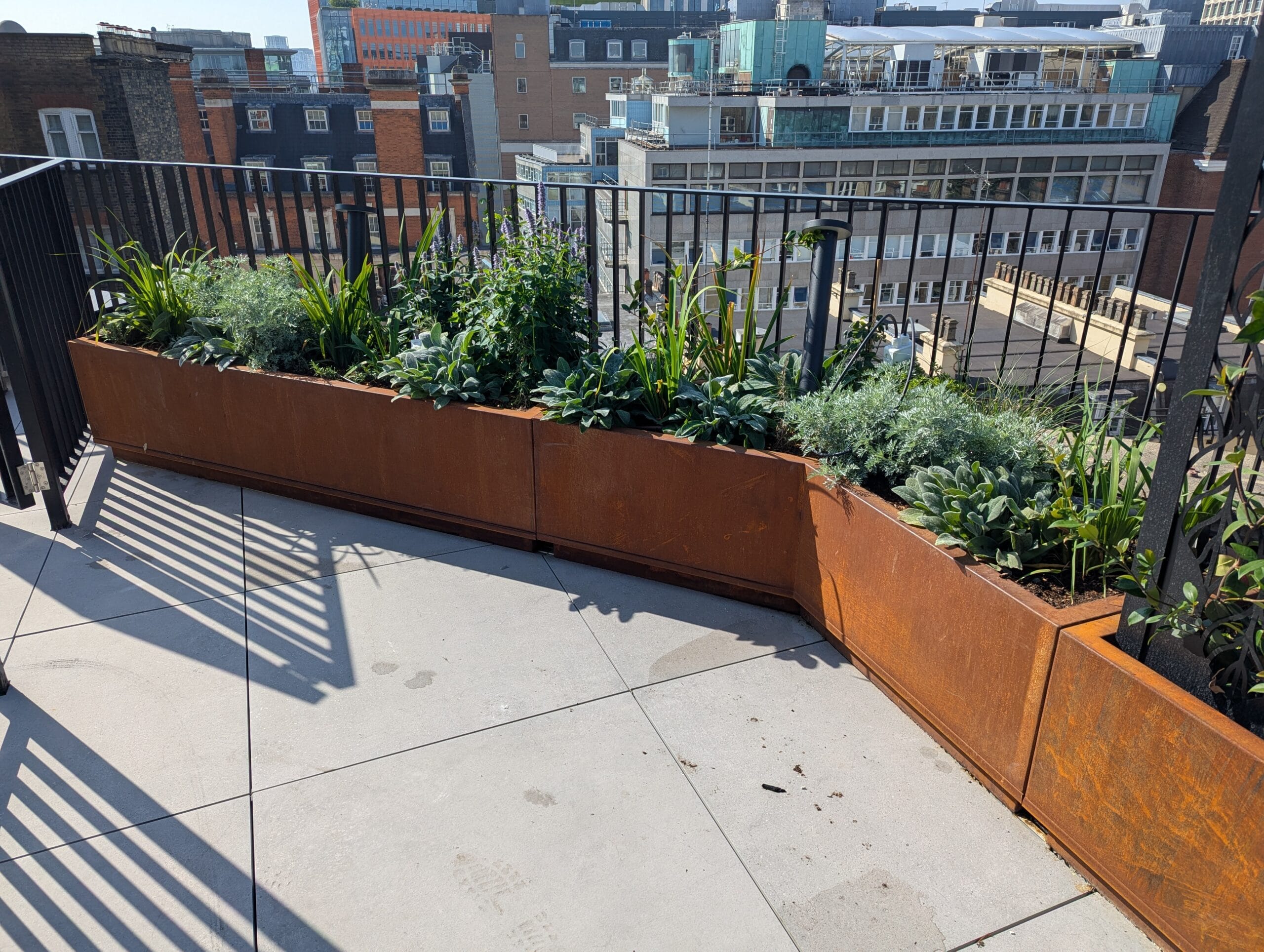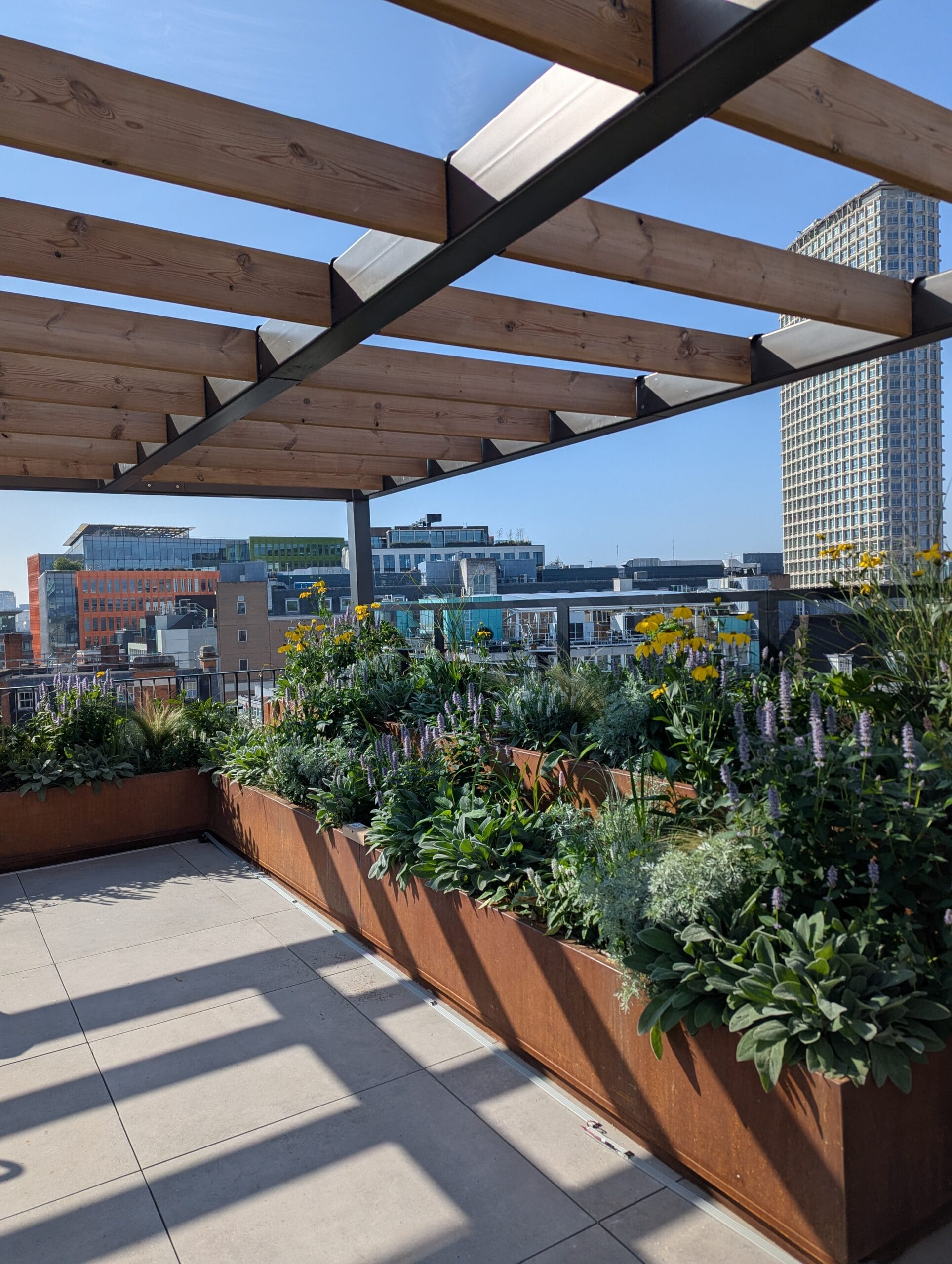 Located in the heart of London, this project involves the comprehensive refurbishment and two-storey extension of an 86,000 sq ft commercial office. The development introduces a new sixth-floor workspace and a seventh-floor pavilion, topped with a communal roof terrace featuring a bespoke mild steel pergola with timber louvres and integrated timber seating. Our extensive architectural metalwork and cladding package across the site includes corten steel planters, aluminium rain screen cladding with timber soffits, and precision-engineered laser-cut privacy screens, all finished with high-quality aluminium copings and flashings.