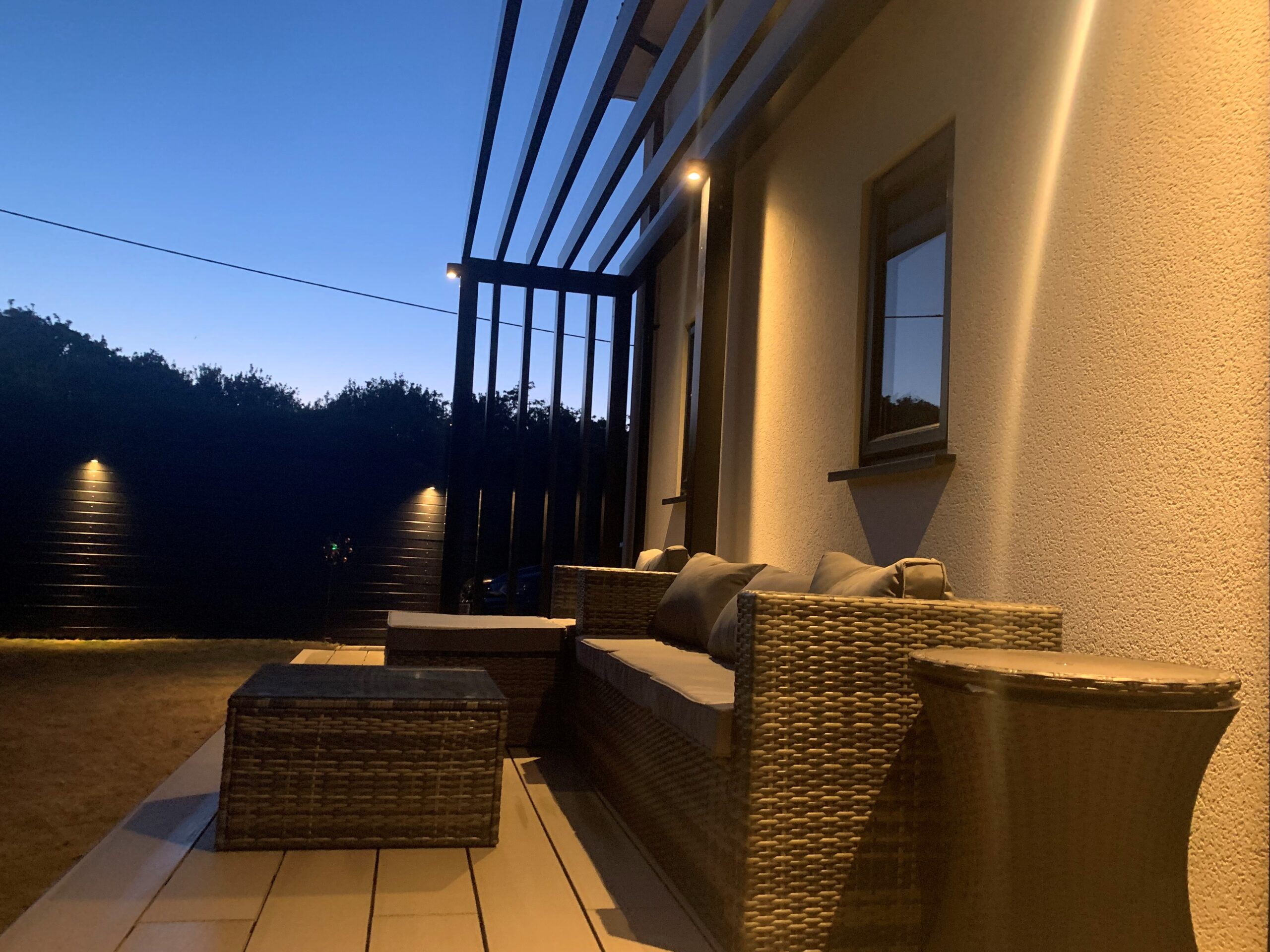 The ex-council house was built in the early 1900’s in a rural setting. The client wanted to update the aesthetic of the property to a more modern and contemporary style while still maintaining the character of the old building. The old frontage of the house was to be turned into the side/rear of the property. By adding a full length pergola along the old frontage, the pergola breaks the façade and helps re-position the property in the setting of the grounds. We used a wrap over aluminium box section to frame the new decking area and allow light to flood into the space.